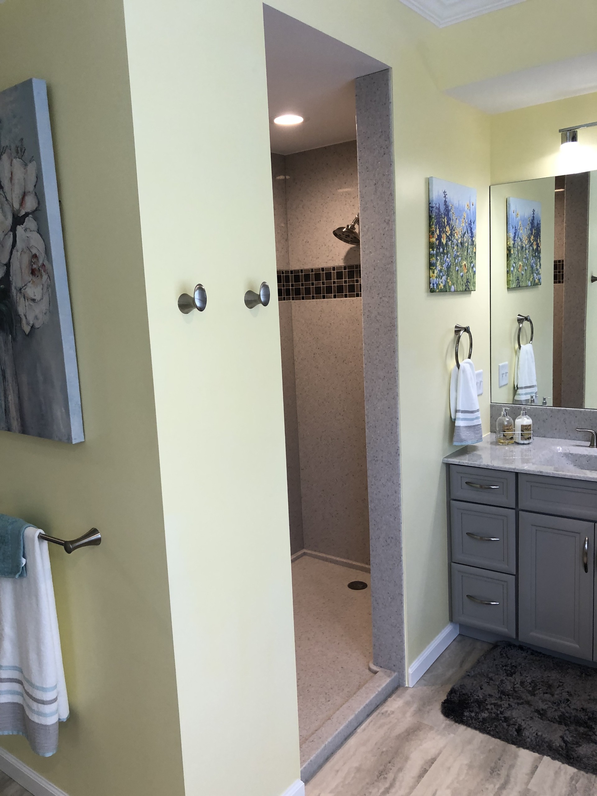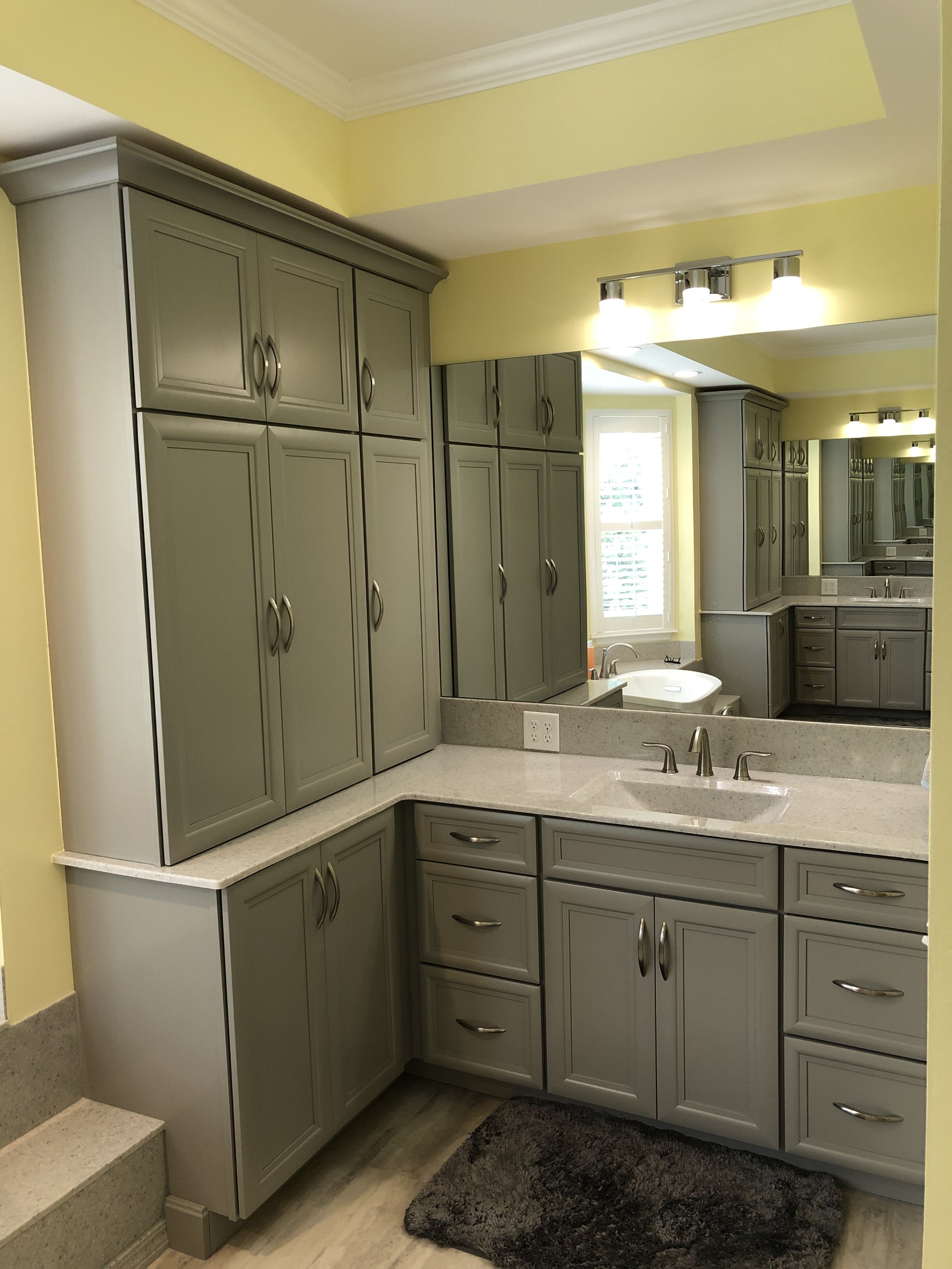 - On the vanity area- Granite or quartz, onyx or cultured marble? What style of Cabinets do you prefer painted / glazed look or stained?