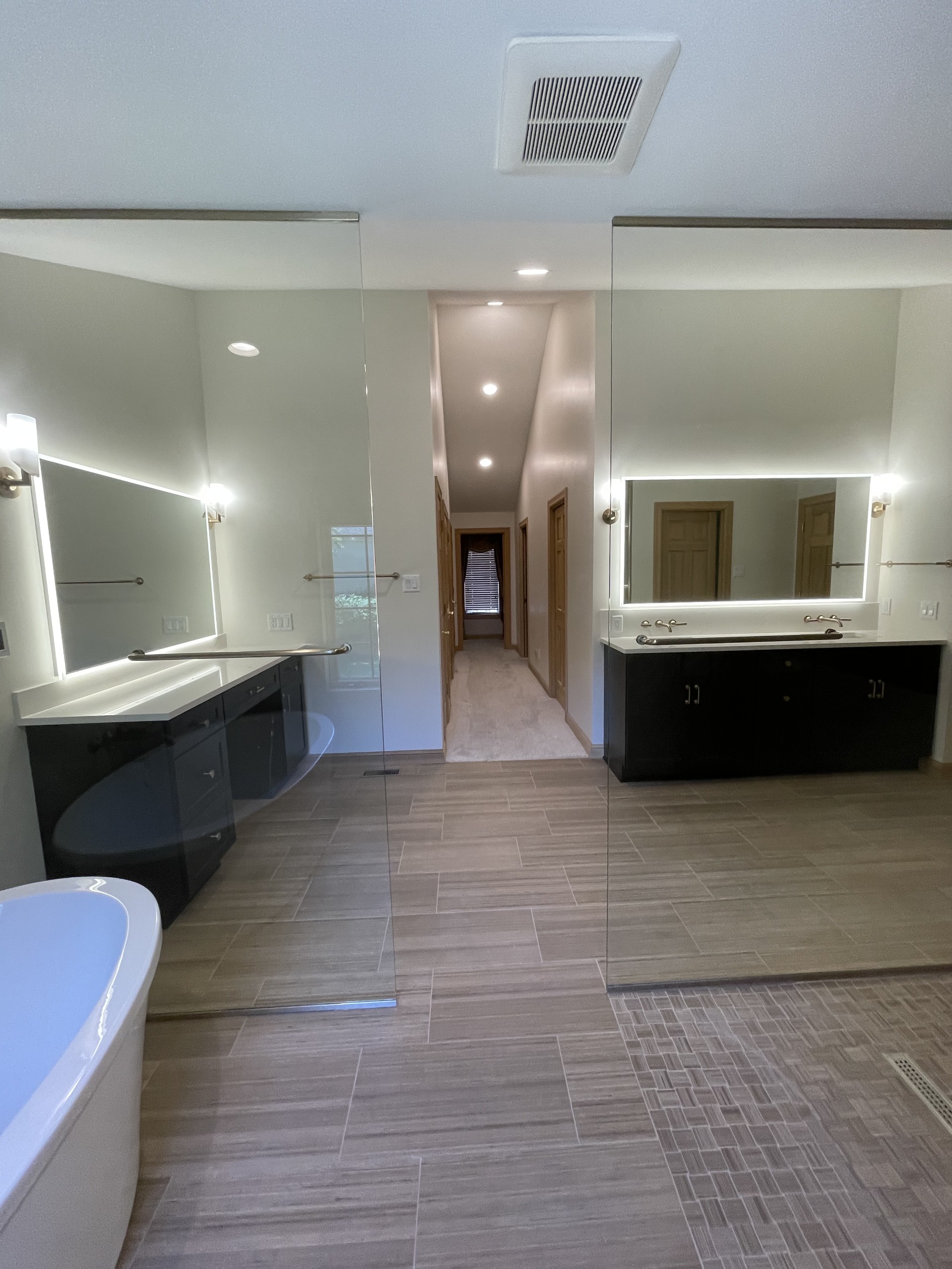 Bathrooms are part of the house where efficiency and organization and comfort all need to blend into one. A spacious, organized, tastefully decorated bathroom is a wonderful start and end to your day.  Whether it’s a hall bathroom shared by many members of the household to a master suite, making use of every bit of space is important. The correct lighting or the perfect tub can play a large role in everyone’s mood.  And your entire home reaps the benefits of making this investment.  Our design team will work with you and your budget to create the bathroom of your dreams.